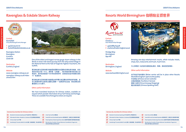 Proven Experience of welcoming Chinese visitors 在接待中国游客方面有着成熟的经验