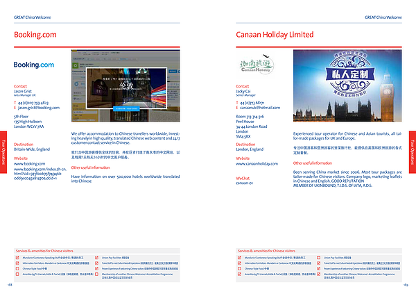 tailor-made for Chinese visitors. Company logo, marketing leaflets