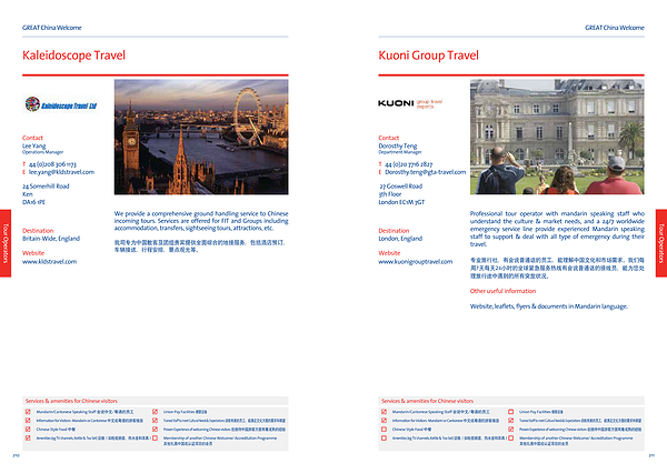 Proven Experience of welcoming Chinese visitors 在接待中国游客方面有着成熟的经验