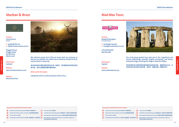Proven Experience of welcoming Chinese visitors 在接待中国游客方面有着成熟的经验