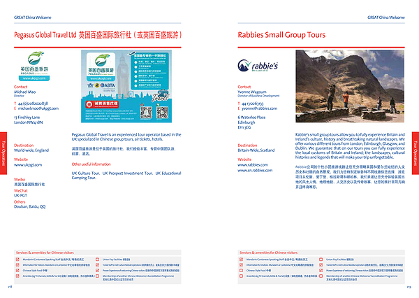 Proven Experience of welcoming Chinese visitors 在接待中国游客方面有着成熟的经验