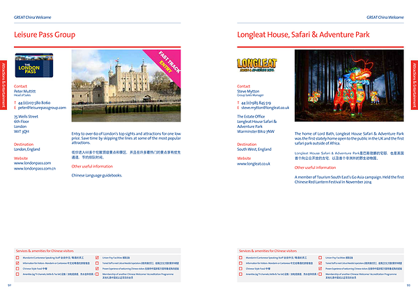 Proven Experience of welcoming Chinese visitors 在接待中国游客方面有着成熟的经验