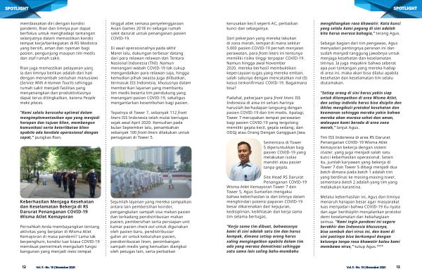 Tim ISS Indonesia di area RS Darurat Penanganan COVID-19 Wisma Atlet Kemayoran bekerja dengan sistem cluster , yang juga menjadi salah satu kunci keberhasilan operasional . Selain itu , jumlah karyawan yang bekerja di Tower 7 dan Tower 5 dibagi menjadi dua batch dimana pada batch 1 adalah tim yang berdinas ke masing-masing tower , sementara batch 2 adalah yang tim yang melakukan karantina .
