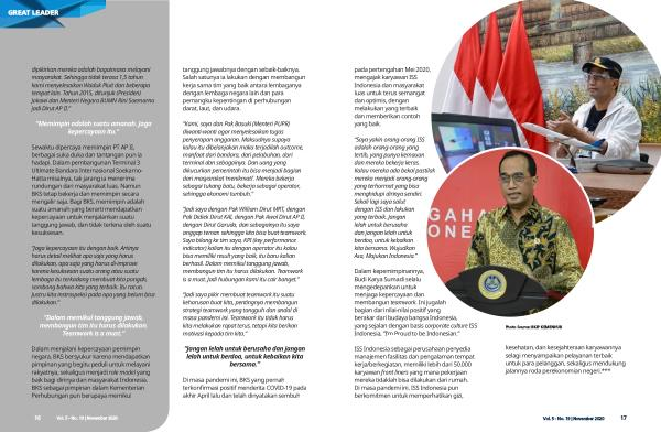 pada pertengahan Mei 2020 , mengajak karyawan ISS Indonesia dan masyarakat luas untuk terus semangat dan optimis , dengan melakukan yang terbaik dan memberikan contoh yang baik .