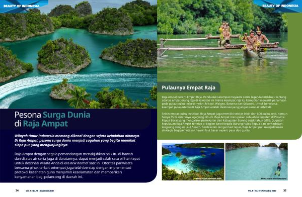 Raja Ampat dengan segala pemandangan menakjubkan baik itu di bawah dan di atas air serta juga di daratannya , dapat menjadi salah satu pilihan tepat untuk destinasi wisata Anda di era new normal saat ini . Otoritas pariwisata bersama pihak terkait setempat juga telah bersiap dengan implementasi protokol kesehatan guna menjamin keselamatan dan memberikan kenyamanan bagi pelancong di daerah ini .