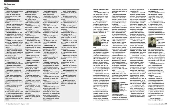 Ken’ s 22 years at the school were dominated by his commitment to boarding and life on the Hill, where he served for 14 years as Head of McMeckan House and three years as Senior Boarding Housemaster. Ken’ s final three Scotch years were spent in the role of Registrar. His funeral was held on 29 June. COCKRAM, John Crothers(’ 41)