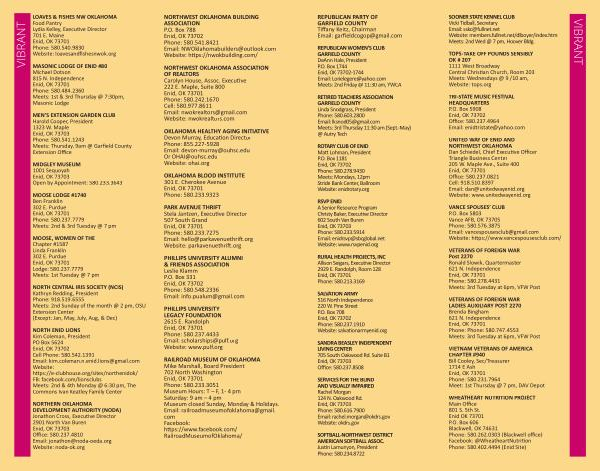 REPUBLICAN WOMEN ’ S CLUB GARFIELD COUNTY DeAnn Hale , President P . O . Box 1744 Enid , OK 73702-1744 Email : Lorielegere @ yahoo . com Meets : 2nd Friday @ 11:30 am , YWCA