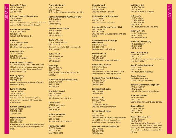 Enid Tag Agency 115 W . Garriott 580.234.4281 Active‐duty discount with use of a state issued Form 779