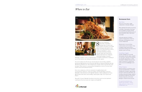 To search hundreds more options by location, cuisine style and price range, go to visitRaleigh. com.