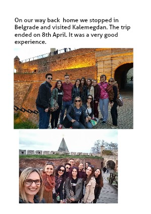 On our way back home we stopped in Belgrade and visited Kalemegdan. The trip ended on 8th April. It was a very good experience.