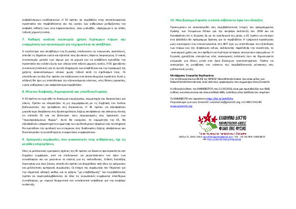Η ΕΕ πρέπει να εγγυηθεί το δικαίωμα ενημέρωσης, συμμετοχής και δικαιοσύνης για όλους. Πρέπει να σταματήσει τη μη συμμόρφωση με τη Σύμβαση του Aarhus βελτιώνοντας την πρόσβαση στη δικαιοσύνη. Η ΕΕ πρέπει να εξασφαλίσει μεγαλύτερη διαφάνεια στις δραστηριότητες λήψης αποφάσεων και άσκησης πίεσης σε επίπεδο ΕΕ και να βελτιώσει τους περιορισμούς στις πρακτικές των“ περιστρεφόμενων θυρών”. Αυτό θα ενισχύσει τη νομιμότητα της ΕΕ, θα εξασφαλίσει ισορροπημένη συμμετοχή των εμπλεκόμενων φορέων ενώ ταυτόχρονα θα εμποδίσει την εμπλοκή των εταιρειών στις διαδικασίες λήψης αποφάσεων και θα αποτρέψει τις ανεπιθύμητες συγκρούσεις συμφερόντων.
