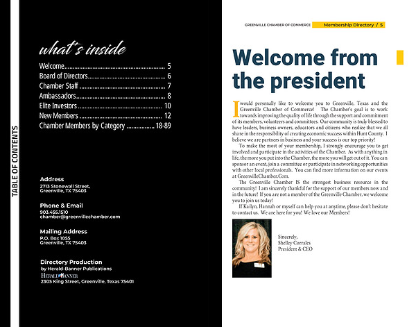 would personally like to welcome you to Greenville, Texas and the Greenville Chamber of Commerce! The Chamber’ s goal is to work towards improving the quality of life through the support and commitment of its members, volunteers and committees. Our community is truly blessed to have leaders, business owners, educators and citizens who realize that we all share in the responsibility of creating economic success within Hunt County. I believe we are partners in business and your success is our top priority!