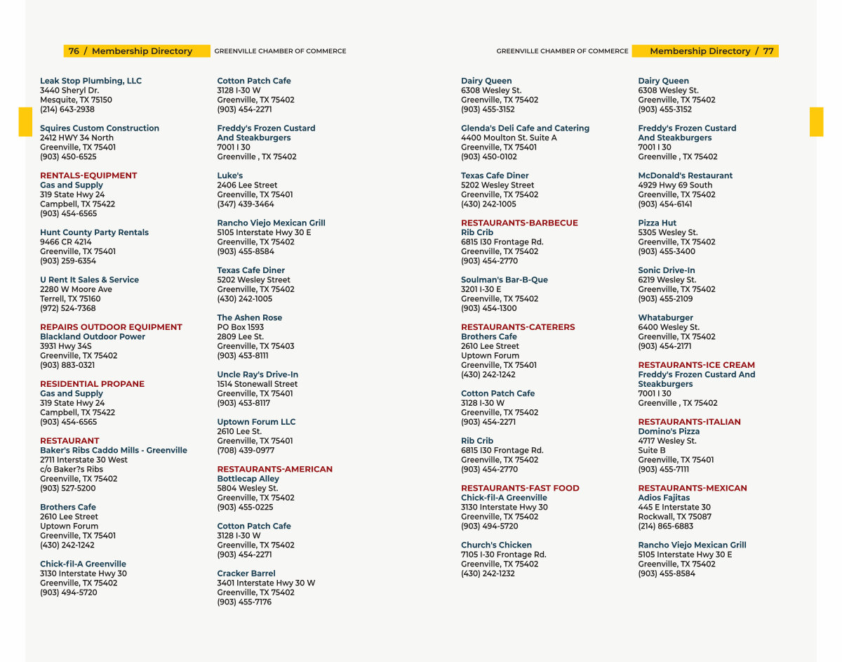 RESTAURANTS-CATERERS Brothers Cafe 2610 Lee Street Uptown Forum Greenville, TX 75401( 430) 242-1242