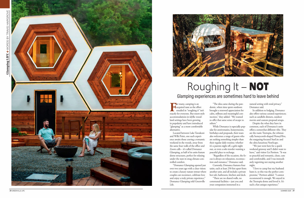 “ Domance Glamping opened just over two years ago with a clear vision: to create a luxury nature retreat where couples can reconnect, celebrate love and enjoy a truly private experience,” Domance Glamping told Greenville Life.