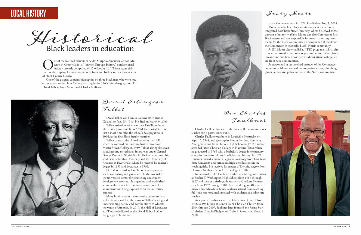 Ivory Moore was born in 1924. He died on Aug. 1, 2014. Moore was the first Black administrator at the recently integrated East Texas State University, where he served as the director of minority affairs. Moore was also Commerce’ s first Black mayor and was responsible for many major improvements for the Black community on campus and throughout the Commerce’ s( historically Black) Norris community.