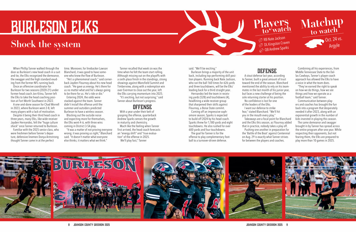 Entering 2024, the odds were stacked against the team. Tanner didn’ t install the offense until the summer and outsiders predicted Burleson to have a winless season. Blocking out the outside noise and expecting more for themselves, the Elks went 4-6, with three wins coming in District 3-5A play.