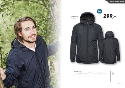 ryggparti og justerbar fast hette. Doble frontlommer, justerbare mansjetter med borrelås, snor i nederkant og