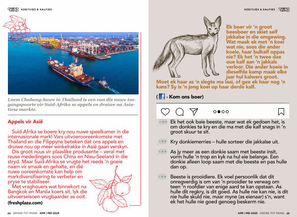 Langs die kiwiblokke strek 118 ha appels, insluitend Pink Lady, Gala en Fuji. Op Windermere tel grondgesondheid en tegnologie swaarder as brute krag. Sensors monitor waterverbruik, kalipers meet vruggroei, en eende sorg vir natuurlike slakbeheer.