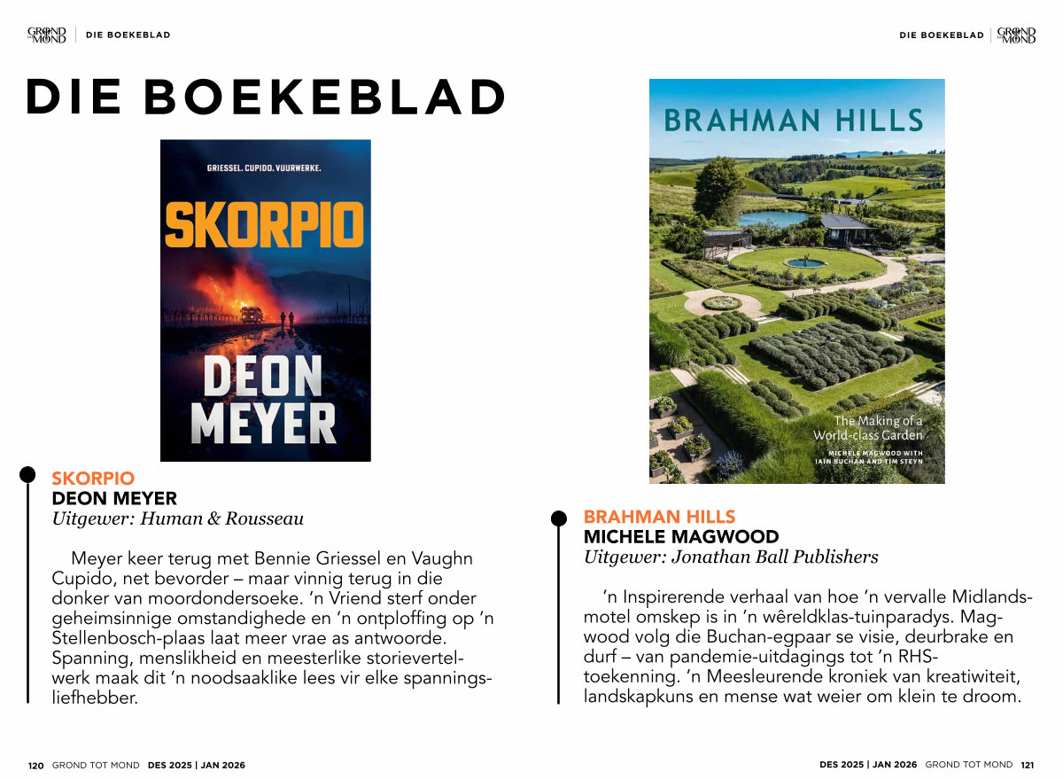 ’ n Inspirerende verhaal van hoe’ n vervalle Midlandsmotel omskep is in’ n wêreldklas-tuinparadys. Magwood volg die Buchan-egpaar se visie, deurbrake en durf – van pandemie-uitdagings tot’ n RHStoekenning.’ n Meesleurende kroniek van kreatiwiteit, landskapkuns en mense wat weier om klein te droom.