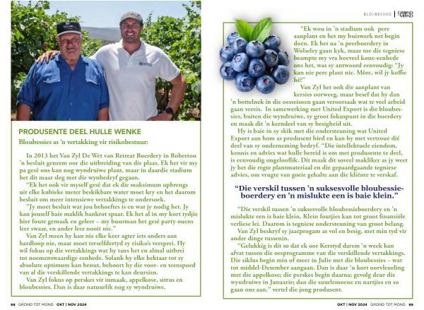 “ Een van die produsente wat ons met hierdie produkte ondersteun , het vanjaar ’ n 98 % -uitpak gehad – en dit op plante wat maar slegs drie jaar oud is ,” vertel Godfrey .
