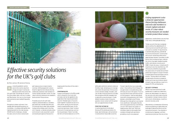 Timber acoustic fencing is a popular option and has the added benefit of reducing noise around the golf club . It can satisfy a number of requirements , is aesthetically pleasing , and blends into most environments . Constructed with an anti-climb flat profile and no gaps between boards , it provides a solid barrier that increases privacy , reduces the risk of stray balls heading towards traffic , and reduces noise by up to 28dB . In high risk areas , it may be worth investing in security rated fencing . LPS 1175 security rated fencing provides the reassurance of tested and certified performance against a range of threats including determined and opportunistic attacks . These products are widely recognised by insurance companies and as such cover any instance where a break in was possible as a result of a failed LPS 1175 certified barrier .