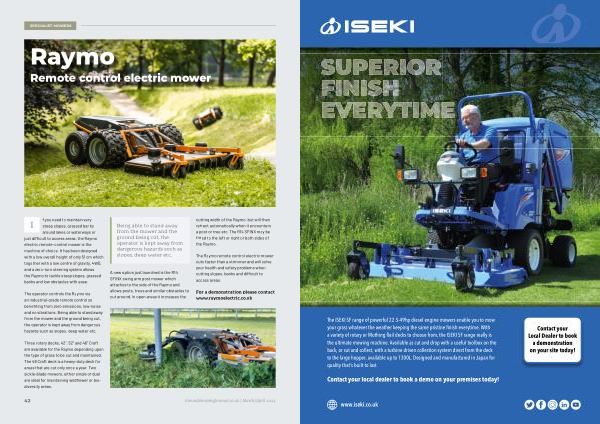 The ISEKI SF range of powerful 22.5-49hp diesel engine mowers enable you to mow your grass whatever the weather keeping the same pristine finish everytime . With a variety of rotary or Muthing flail decks to choose from , the ISEKI SF range really is the ultimate mowing machine . Available as cut and drop with a useful toolbox on the back , or cut and collect , with a turbine driven collection system direct from the deck to the large hopper , available up to 1300L . Designed and manufactured in Japan for quality that ’ s built to last .
