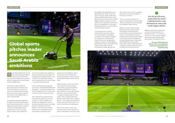 David Ball , Managing Director at SIS Middle East , said : “ Over the past five years , Saudi Arabia has clearly established itself as a key destination for some of the world ’ s biggest athletes . People ’ s love of sports here is apparent , and there ’ s been a real appetite for the highstandard facilities to rival those of major European teams .