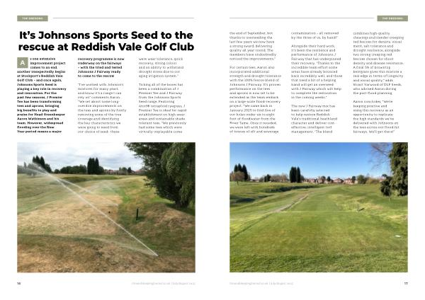 The new J Fairway mix has been carefully selected to help restore Reddish Vale’ s traditional heathland character and deliver costeffective, intelligent turf management.“ The blend combines high-quality chewings and slender creeping red fescues for density, visual merit, salt tolerance and drought resilience, alongside two strong creeping red fescues chosen for shoot density and disease resistance. A final 5 % of browntop bentgrass gives this mixture a real edge in terms of longevity and visual quality,” adds Stuart Yarwood of DLF Seeds, who advised Aaron during the post-flood planning.