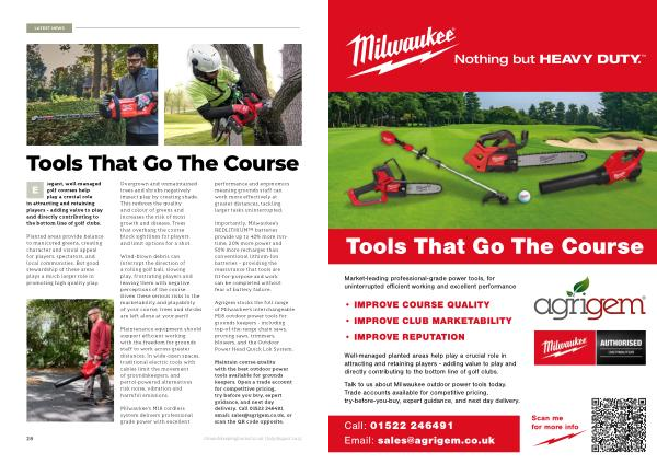 Maintain course quality with the best outdoor power tools available for grounds keepers. Open a trade account for competitive pricing, try before you buy, expert guidance, and next day delivery. Call 01522 246491, email: sales @ agrigem. co. uk, or scan the QR code opposite.