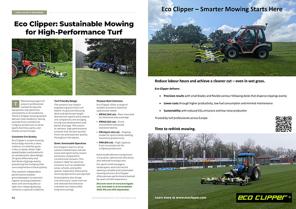 • Sustainability with reduced CO₂ emissions and low noise production Trusted by turf professionals across Europe.
