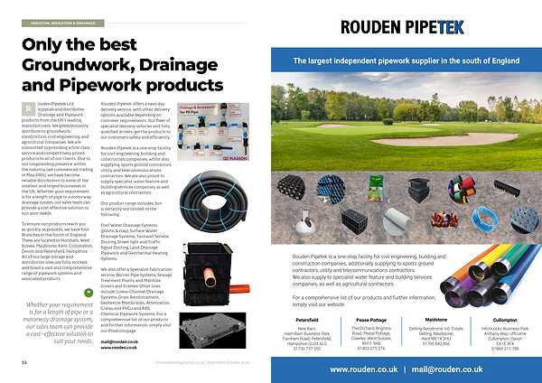 Rouden Pipetek is a one-stop facility for civil engineering, building and construction companies, whilst also supplying, sports ground contractors, utility and telecommunications contractors. We are also proud to supply specialist water feature and building services companies, as well as agricultural contractors.