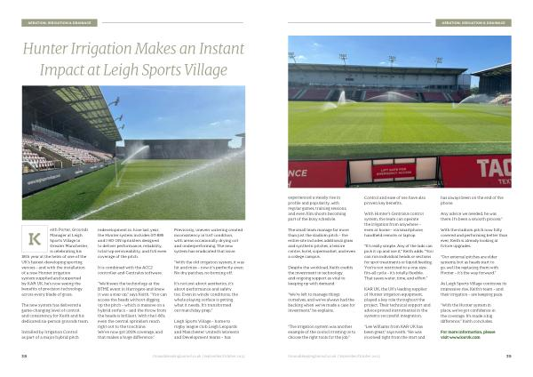 As Leigh Sports Village continues its impressive rise, Keith’ s team – and their irrigation – are keeping pace.