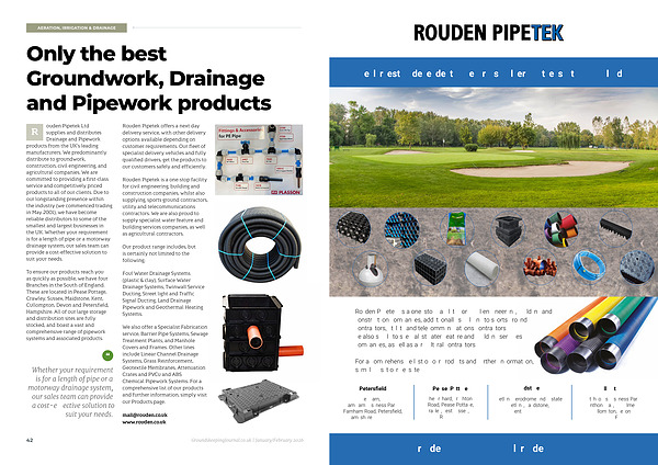 Rouden Pipetek is a one-stop facility for civil engineering, building and construction companies, whilst also supplying, sports ground contractors, utility and telecommunications contractors. We are also proud to supply specialist water feature and building services companies, as well as agricultural contractors.