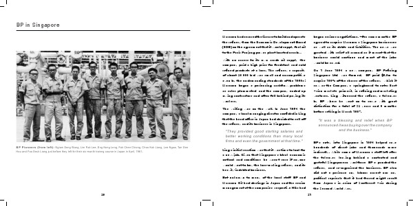 BP Pioneers (from left): Ngiam Seng Wang, Lim Pak Lee, Eng Keng Leng, Fok Chee Chiong, Choo Kok Liang, Lee Ngow, Tan See