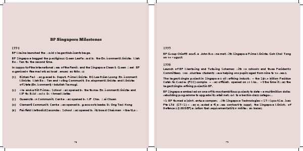 BP Singapore Milestones