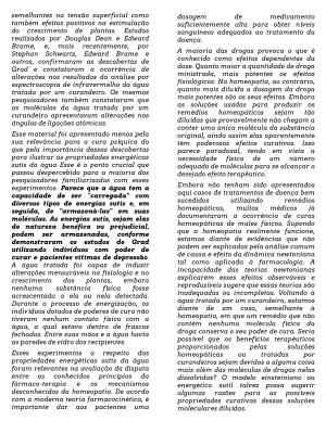 Esses exper im entos a r espeito das pr opr iedades ener géticas sutis da água for am r elevantes na avaliação da disputa entr e os conhecidos pr incípios da fár m aco-ter apia e os m ecanism os desconhecidos da hom eopatia. De acor do com a m oder na teor ia far m acocinética, é im por tante dar aos pacientes um a dosagem de m edicam ento suficientem ente alta par a obter níveis sanguíneos adequados ao tr atam ento da doença.