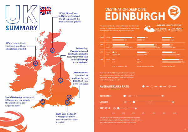 In 2024, 61 % of European travel buyers still considered sustainability a high priority, with 44 % of travel managers globally having integrated sustainability initiatives into their programmes. 23 In 2025, 42 % of operators consider their ESG credentials“ very important” in driving demand. Regardless of where sustainability now ranks in corporate priorities, 42.3 % of serviced apartment operators consider their ESG credentials to be‘ very’ to‘ extremely’ important in driving customer demand. 24