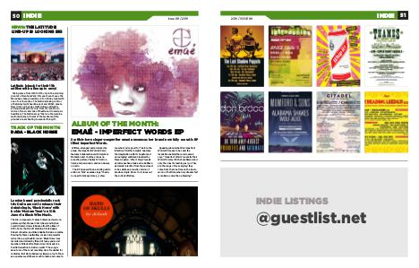 INDIE 51 2016 / ISSUE 88 INDIE LISTINGS @guestlist.net