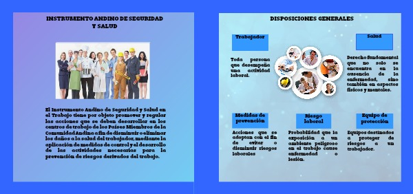 El Instrumento Andino de Seguridad y Salud en el Trabajo tiene por objeto promover y regular las acciones que se deben desarrollar en los centros de trabajo de los Países Miembros de la Comunidad Andina a fin de disminuir o eliminar los daños a la salud del trabajador, mediante la aplicación de medidas de control y el desarrollo de las actividades necesarias para la prevención de riesgos derivados del trabajo.