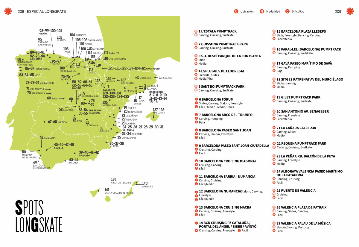 208- ESPECIAL LONGSKATE 3 S. J. DESPÍ 1 L’ ESCALA 2 GUISSONA 5 SANT BOI 4 ESPLUGUES 18 SITGES 17 GAVÁ BARCELONA 6-7-8-9-10 11-12-13-14 15-16 VALENCIA 35 GUARDAMAR 33-34 ALICANTE 20 BENAGÉBER 19 GUILET 21 LA CAÑADA 22 REQUENA 23 LA PEÑA 24-25-26-27-28-29-30-31 ALGINET 32 MURCIA 36-37-38 GRANADA 45-46-47-48 43-44 51 GUILLENA MARIENA DE ALJARAFE SANLÚCAR DE BARRAMEDA MÁLAGA SEVILLA 39-40-41-42 50 49 58-59-60-61 62-63-64-65 MADRID 53-54 55-56 52 LEGANÉS 66 57 67-68 MÉRIDA 70 SALAMANCA 71 VILLAMAYOR 72-73-74 VALLADOLID 75-76 BURGOS 69 ÁVILA 81 LA SOLANA 82 TOLEDO 77 GUADALAJARA 78 79 80 83-84-85 VIGO 86-87 PONTEVEDRA 89-90-91 92-93-94 A CORUÑA 88 SANTIAGO DE COMPOSTELA 96-97 OVIEDO 95 TAPIA DE CASARIEGO 98-99-100-101 GIJÓN 102 LLANES 109 TORRELAVEGA 110 105-106 SANTANDER 107 SOMO 104 SUANCES 103 TAGLE 108 113 GETXO 112 SOPELANA 114 BILBAO 115 116 119 117 ZARAUTZ 118 SAN SEBASTIÁN 111 SANTURCE 126 HUESCA 127 BARBASTRO 120-121-122-123-124-125 PAMPLONA 128 LA MUELA 136 MONTALBÁN ZARAGOZA 129-130-131 132-133- 134-135 TORREJÓN DE ARDOZ 137-138 MALLORCA VILLA DE TEGUISE ARRECIFE SANTA CRUZ DE TENERIFE 140 139 141 Spots LONGSKATE
