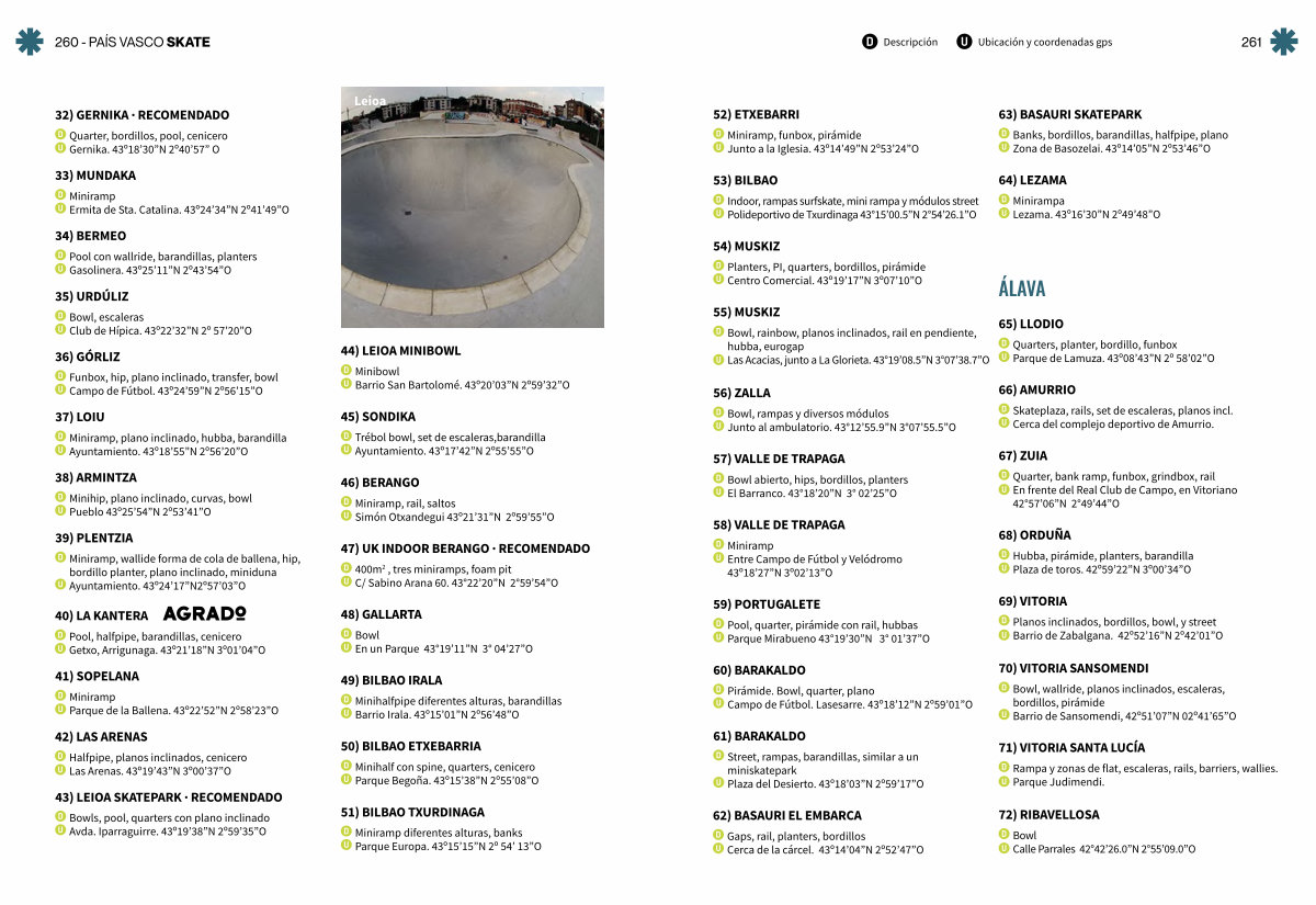 Banks, bordillos, barandillas, halfpipe, plano Zona de Basozelai. 43 º 14’ 05” N 2 º 53’ 46” O