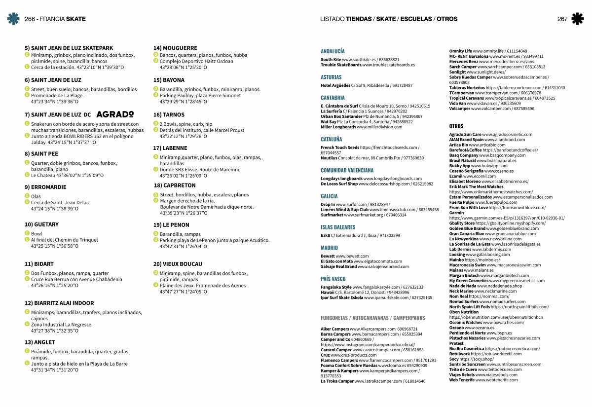 Miniramp, quarter, plano, funbox, olas, rampas, barandillas Donde SB3 Elisse. Route de Maremne 43 º 26’ 02” N 1 º 25’ 09” O