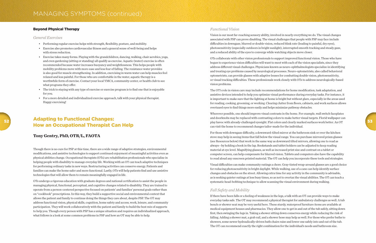 Vision is our most far-reaching sensory ability, involved in nearly everything we do. The visual changes associated with PSP can prove disabling. The visual challenges that people with PSP may face include difficulties in downgaze, blurred or double vision, reduced blink rate( leading to painful, dry eyes), photosensitivity( especially outdoors in bright sunlight), interrupted smooth tracking and steady gaze, and a reduced ability of the eyes to converge while watching objects move closer.