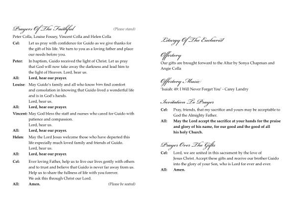 Prayers Of The Faithful ( Please stand ) Peter Colla , Louise Fossey , Vincent Colla and Helen Colla Cel :
