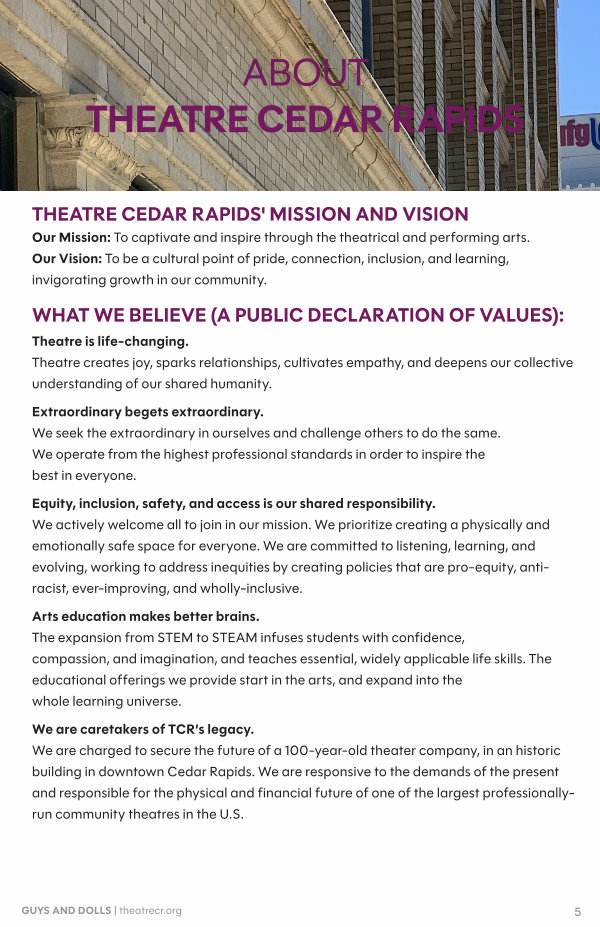 THEATRE CEDAR RAPIDS ' MISSION AND VISION