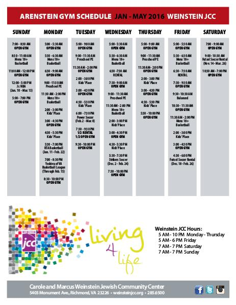ARENSTEIN GYM SCHEDULE JAN - MAY 2016 WEINSTEIN JCC