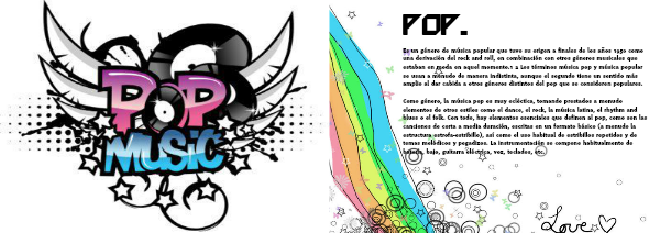 Es un género de música popular que tuvo su origen a finales de los años 1950 como una derivación del rock and roll, en combinación con otros géneros musicales que estaban en moda en aquel momento.1 2 Los términos música pop y música popular se usan a menudo de manera indistinta, aunque el segundo tiene un sentido más amplio al dar cabida a otros géneros distintos del pop que se consideren populares.