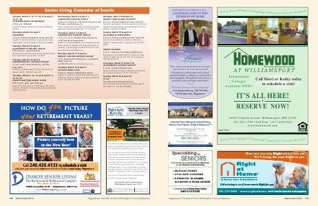 Tuesdays, March 12 & April 9 SECOND WIND CLUB 2:30 p. m., Hospice of Washington County Support for people with breathing difficulties and respiratory diseases, sponsored by Meritus Medical Center. Call 301-791-6360.