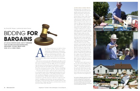 GOING ONCE, GOING TWICE … Equipped with a microphone, auctioneer Bob Benchoff tests the loud speaker system, greets buyers and thanks the families, and announces the terms of the sale— cash, approved check or major credit card, no buyer’ s premium, no fee for credit cards and, most notably, no sales tax. In Pennsylvania, if the auction is not held at an auction house, there is no sales tax.“ What you bid is what you pay,” says Bob. But, if the sale is held at an auction house and that is the primary use of the facility, a sales tax is added.“ In Maryland, everything, with the exception of certain agricultural equipment, is taxable no matter where the sale is held,” says Tom. Unlike in Maryland, Pennsylvania auctioneers must also be licensed, and large firms like Cochran follow the regulations in every state they operate.