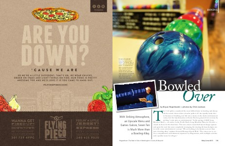 The 7-10 split is considered the most difficult shot in bowling and always elicits ecstatic cheers when a bowler pulls it off. An equally tricky shot in business is breathing new life into a down-at-the-heels entertainment venue, but the transformation at Seven Ten has garnered rave reviews by putting“ a new spin on entertainment.” In the spring of 2008 Long Meadow Bowl— an anchor in the North End’ s Long Meadow Plaza for 38 years— closed its doors for the final time. The new owners researched layout design options and spent the next few years completely revamping the existing 24-lane duckpin center with a new entertainment concept.“ We are looking to be known as more than just a bowling alley,” explains General Manager David Wolf.“ The vision was to create a comprehensive entertainment experience in Hagerstown, with multiple activities and a quality menu for all ages.”